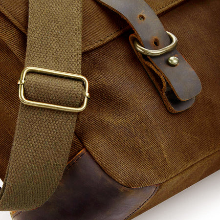Discover premium fabrics and handcrafted details with the Heritage waxed canvas messenger. Available in a luxe waxed cotton canvas with authentic leather accents and antique brass effect fittings, this casual carryall makes the perfect statement piece.