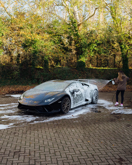 Designed to be used after the pre-wash and contact wash stages, Glö is applied just like a traditional snow foam—but instead of watching dirt slide away, you’ll see (and hear) the foam crackle and disperse, leaving paintwork and glass unbelievably glossy and covered in tall, proud water beads.