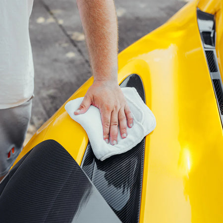 Using a clean, soft microfibre cloth, buff the product evenly to achieve a consistent, streak-free finish.